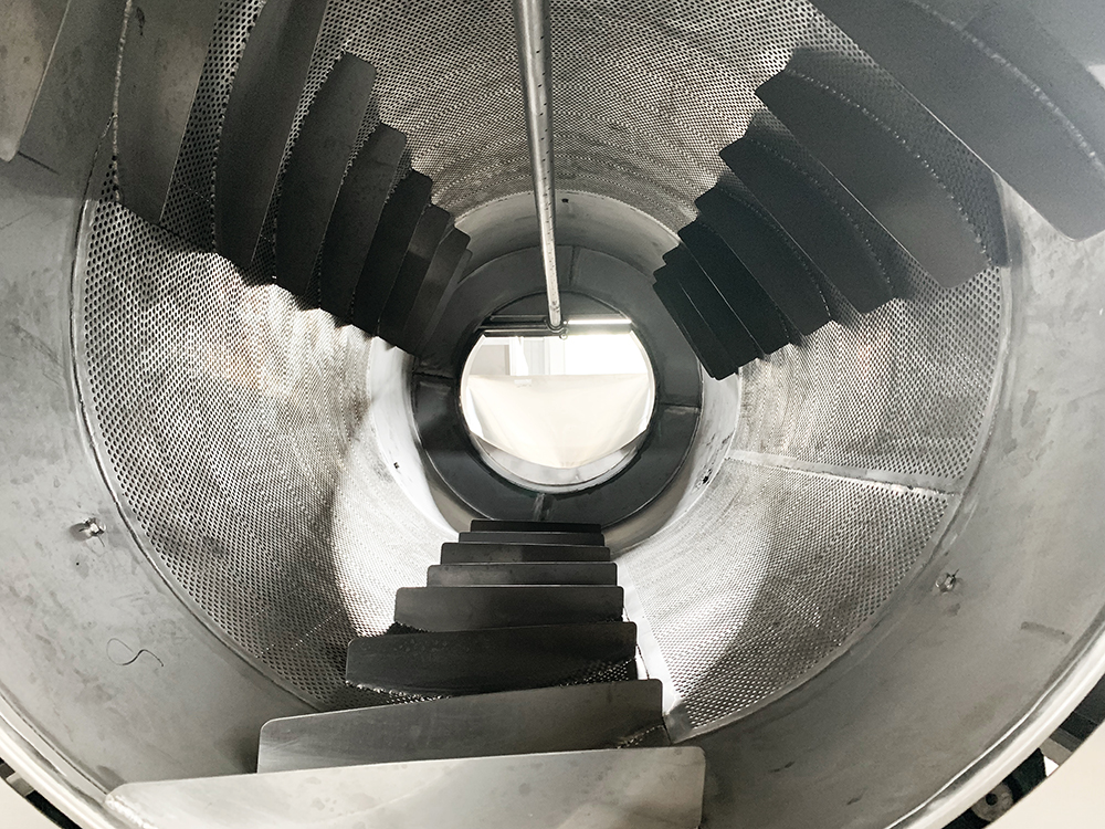 物料由進(jìn)料斗送入,啟動高壓水泵、轉(zhuǎn)動筒體,物料在被筒體內(nèi)螺旋板推進(jìn)的同時進(jìn)行漂洗,高壓水沖洗,達(dá)到清洗的效果。